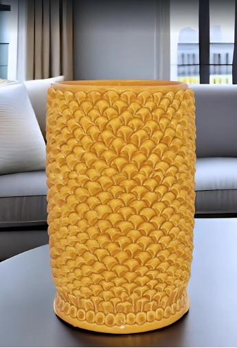 Mediterranean-Style Sicilian Ceramic Vase with Pinecone Motif